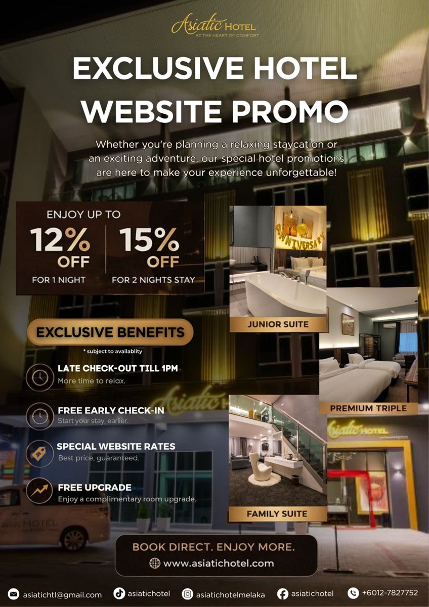 Asiatic Hotel is situated a 15-minute drive from A Famosa and from the lively Jonker Walk Melaka and Maritime Museum. Guest can take a train to Bangunan Stadthuys are within a 15-minutes drive away. The hotel features many beautifully appointed business budget rooms, many of which include television LCD screen, FOC Wi-Fi access, facilities for disabled guests, express check-in/check-out, bathroom toiletries and air conditioning ,Luggage storage is available at the front desk. When you are looking for comfortable and convenient accommodations in Melaka, make Asiatic Hotel be you home away from home.